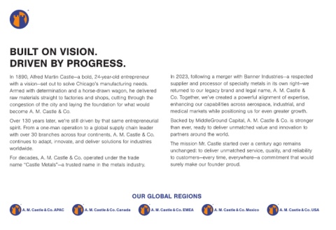 Over 130 years later, we’re still driven by that same entrepreneurial Backed by MiddleGround Capital, A. M. Castle & Co. is stronger